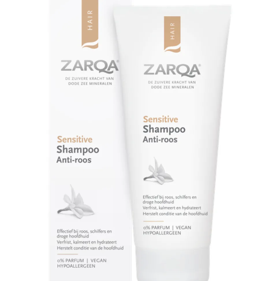 Zarqa Shampoo Anti-roos met menthol en aloë vera – is zeer effectief bij roos en schilfers. Het verfrist, kalmeert en hydrateert de gevoelige hoofdhuid en verbetert de beschermende barrière van de hoofdhuid . Deze shampoo bevat geen parfum, cocamidopropyl betaïne, siliconen of andere irriterende stoffen en is daardoor geschikt voor mensen met een zeer gevoelige huid. De formule bevat piroctone olamine, een uiterst milde werkstof die helpt de schilfers die roos veroorzaakt tegen te gaan. Het resultaat is een rustigere hoofdhuid met minder schilfers en roodheid.