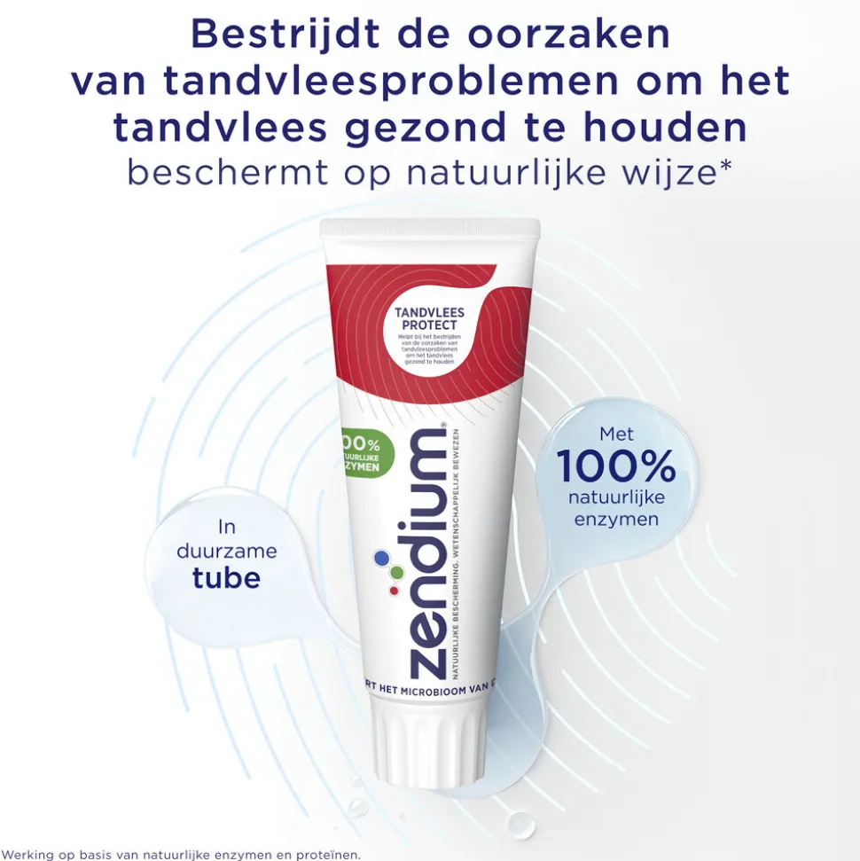 - Zendium Tandvlees Protect Tandpasta bevat 100% natuurlijke enzymen
