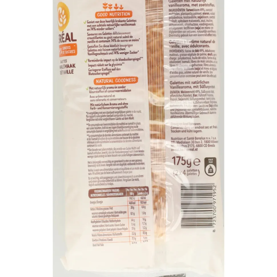 Céréal Galettes Vanillesmaak zijn heerlijke galetten met natuurlijk vanillearoma, met zoetstoffen.