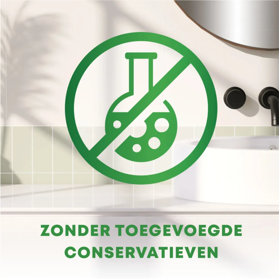 - Met plantaardig ingrediënt (82% van totale oppervlakte-actieve stof, welke onderhevig zijn van verwerking)