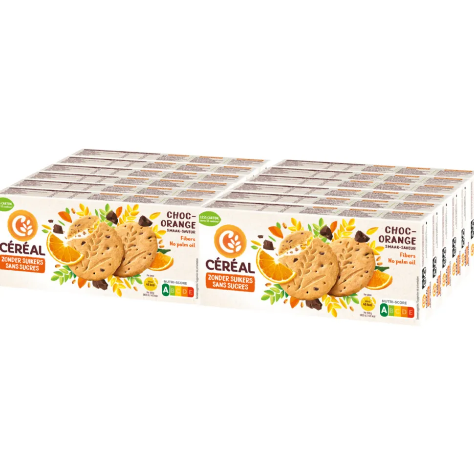 Cereal Zandkoekjes Chocolade & Sinaasappel zijn heerlijke zandkoekjes van chocolade en sinaasappel. De koekjes bevatten lekkere stukjes chocolade en de sinaasappel heeft een frisse smaak. Ook zijn de koekjes ook nog eens suikervrij, zo kan jij verantwoord genieten. Vooral heerlijk bij de koffie of thee of ideaal als tussendoortje.