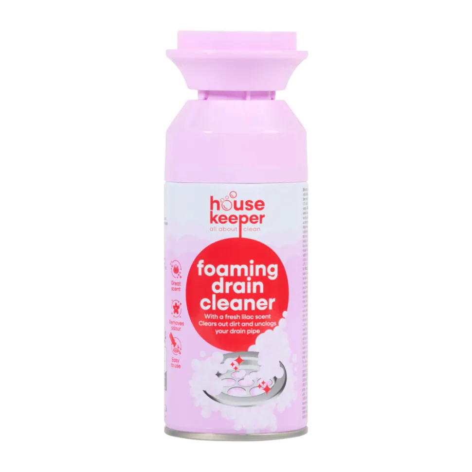 De Housekeeper Foaming Drain Cleaner reinigt je afvoer grondig en fris. De krachtige schuimformule zet uit in de afvoer en pakt vuil en nare geuren aan, zelfs op moeilijk bereikbare plekken zoals de overloop. Je hebt geen bleekmiddel nodig en je wastafel blijft schoon zonder knoeien. Met de frisse geur van lila ruikt alles weer aangenaam en verzorgd.