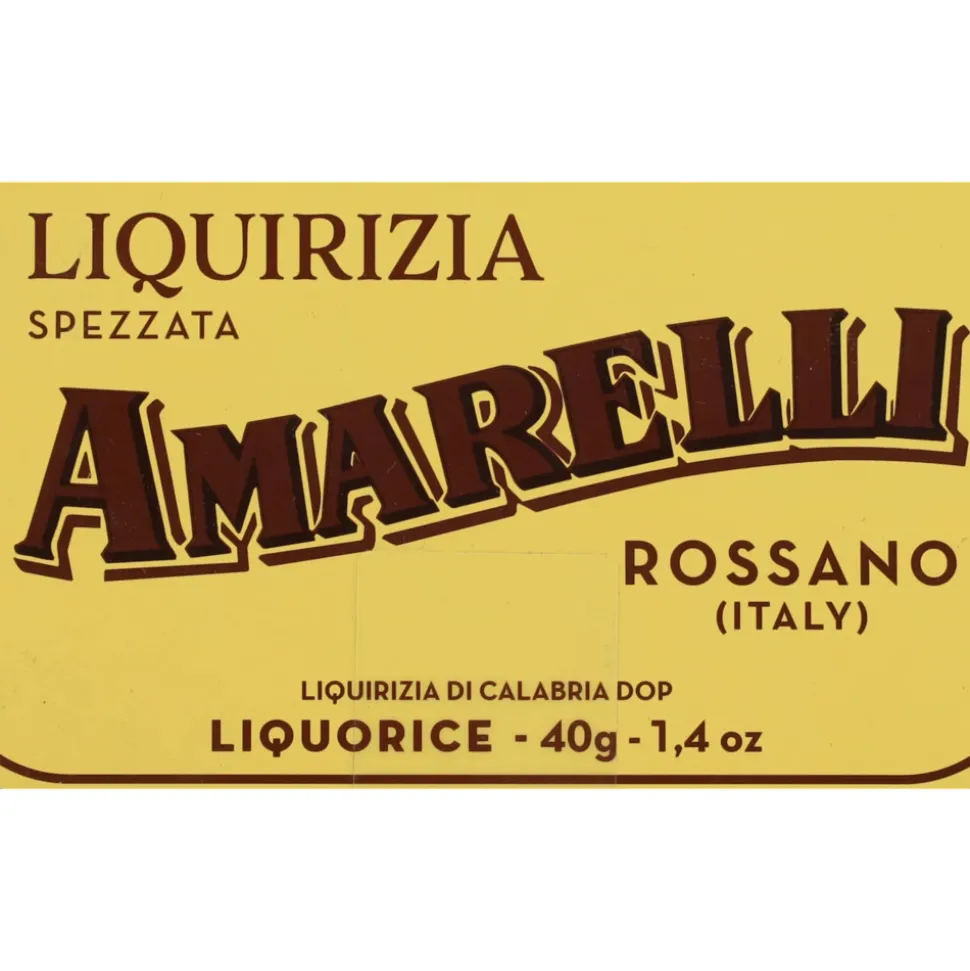 Amarelli spezzata brokjes puur, zonder toevoeging van suiker en zout, kleur-, reuk- en geurstoffen. Verpakt in een geel blikje.