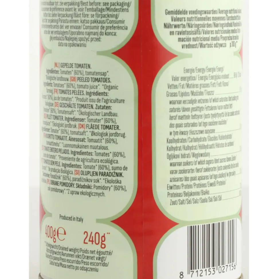 Gepelde tomaten* in tomatensap* * Biologische landbouw