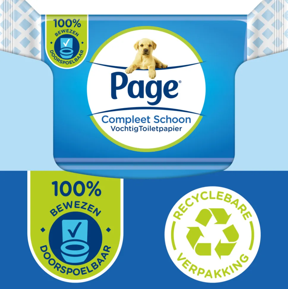 Page Vochtig Toiletpapier Compleet Schoon is onmisbaar voor een hygiënisch en schoon resultaat. Deze variant is erg fris en bovendien zo zacht als katoen voor je billen. Wist je dat Page vochtig toiletpapier 100% doorspoelbaar en biologisch afbreekbaar is? Ze voldoen dan ook aan de INDA/EDANA-normen voor doorspoelbaarheid. Dit betekent dat je ze veilig kunt doorspoelen door je toilet. Bovendien zitten ze in een recyclebare verpakking, zijn de doekjes plasticvrij en gemaakt van 100% natuurlijke vezels. Het licht vochtig toiletpapier kunt u gewoon gebruiken na droog wc papier en geeft je de zekerheid van een schoon en fris gevoel.