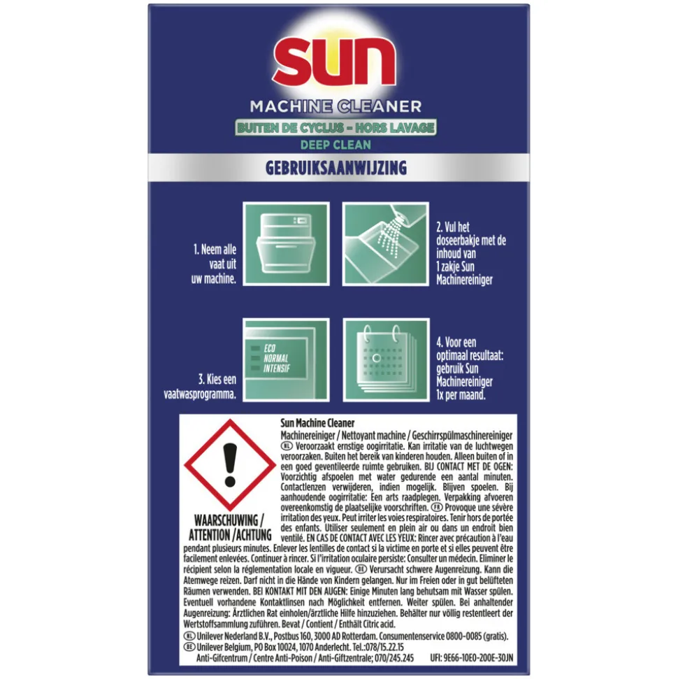 - Sun Out-Wash Machinereiniger zorgt voor een hygiënisch schone vaatwasser