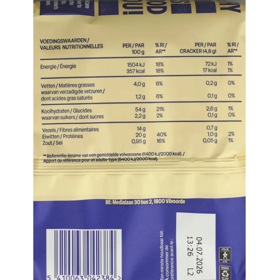 | Voeding | Per 100 g | % RI** | Per Cracker (4,8 g) | % RI** |