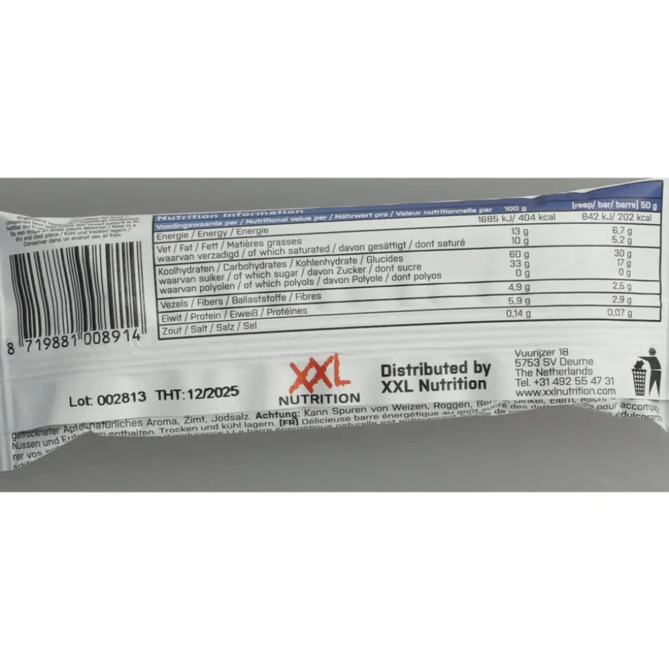 XXL Nutrition Natural Energy Bar Apple Pie is een heerlijke energiereep en ideaal om voor je kracht- of duurtraining te gebruiken of als voedzame snack tussendoor. De Natural Energy Bar is gemaakt van natuurlijke ingrediënten zoals dadels, haver en kaneel. Tevens zijn de Natural Energy Bars vrij van kunstmatige zoetstoffen en lactose en passen deze perfect binnen een veganistische levensstijl. En dit alles voor nog geen 190 kcal per reep.