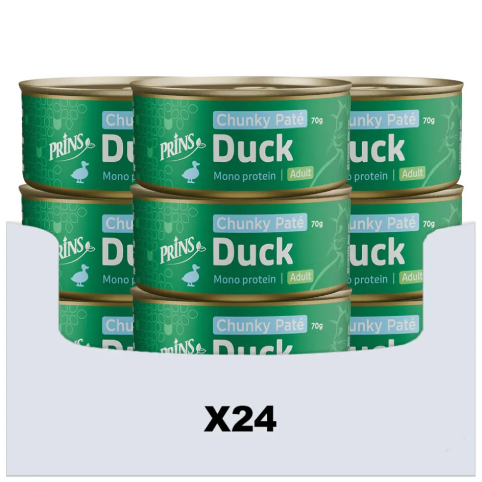 Prins Chunky Paté Kattenvoer Nat Eend is speciaal ontwikkeld voor katten die houden van een smaakvolle en voedzame maaltijd. Deze paté met eend biedt hoogwaardige voeding en is rijk aan essentiële voedingsstoffen. Het zachte en smeuïge karakter maakt het een onweerstaanbare traktatie voor jouw kat.