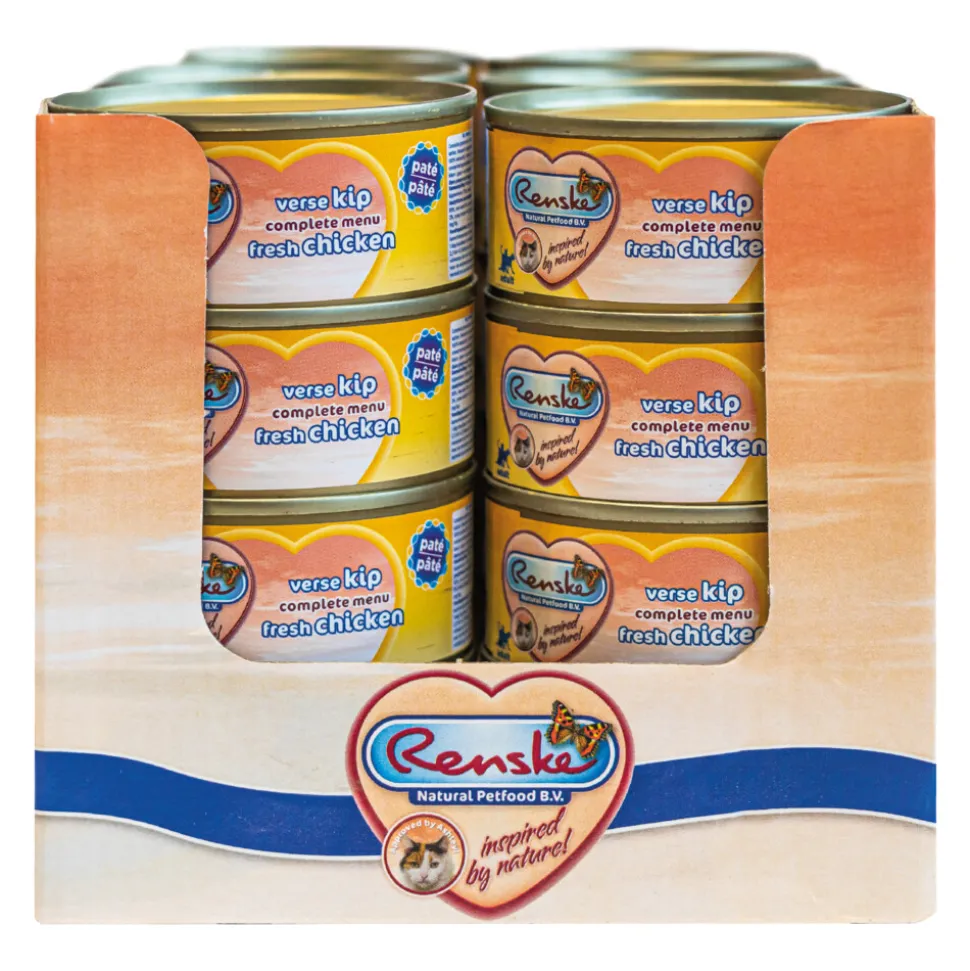 Renske Kattenvoer Paté Kip is een smakelijke complete natvoeding voor katten. Door het hoge kip gehalte, is dit een zeer licht verteerbaar en smakelijke maaltijd. Deze maaltijd is geheel vrij van suikers, zout, chemische conserveringsmiddelen, kleur-, geur- en smaakstoffen.
