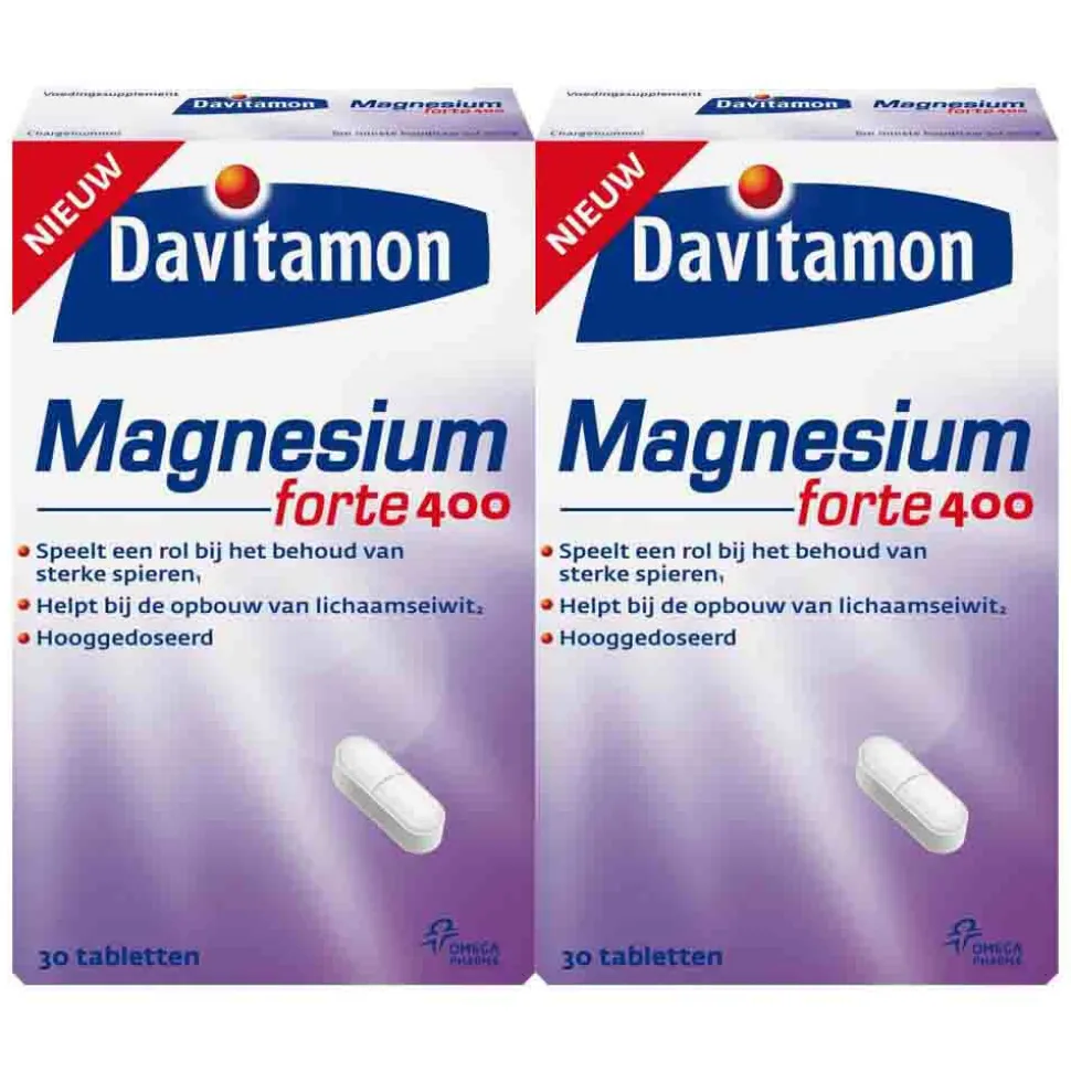 Davitamon Magnesium 400 biedt actieve mensen een steuntje in de rug. Dit voedingssupplement bevat een hoge dosering magnesium, dat goed is voor de spieren en het zenuwstelsel. Magnesium is belangrijk voor het behoud van sterke spieren. Ook speelt magnesium een rol bij de activiteit van bepaalde enzymen, die betrokken zijn bij het energiemetabolisme. Zo draagt magnesium bij aan fitheid.Voedingssupplement met magnesium
