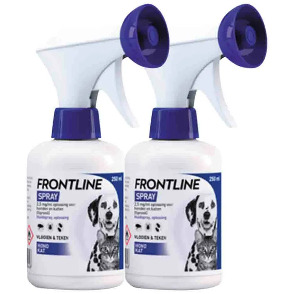 Frontline Spray bestrijdt vlooien en teken en spuit je direct op je hond of kat. De spray kun je eenvoudig aanbrengen met de spuitflacon.