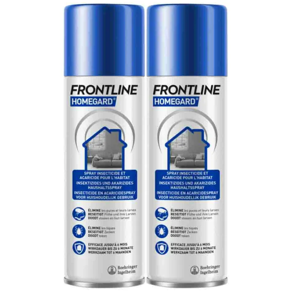 Frontline Homegard® is een omgevingsspray om een (beginnende) vlooienbesmetting in huis te bestrijden. 95% van de vlooien bevinden zich niet op je dier maar in de omgeving van je dier en in huis. Daarom is het belangrijk om naast je huisdier ook goed je huis te beschermen tegen vlooien en teken.