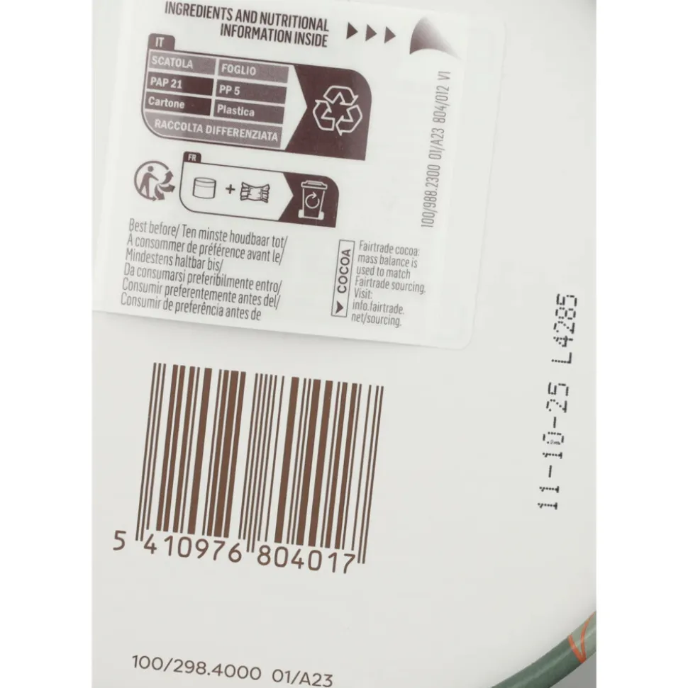 Bevat melk en noten. Kan andere noten en tarwe bevatten.