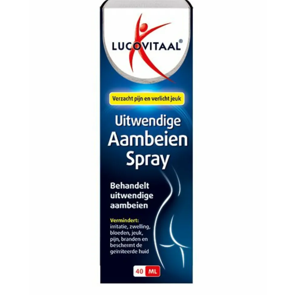 Medisch hulpmiddel Aambeien Spray van Lucovitaal is voor de behandeling van uitwendige aambeien en andere kleinere aandoeningen in het gebied rondom de anus en de endeldarm zoals anale jeuk en kloofjes. Lucovitaal Aambeien Spray vermindert irritatie, zwelling, bloeding, jeuk, pijn en een branderig gevoel. Daarnaast voorkomt de spray dat de geïrriteerde huid in aanraking komt met vocht of ontlasting uit de endeldarm, waardoor de aandoening kan verergeren.