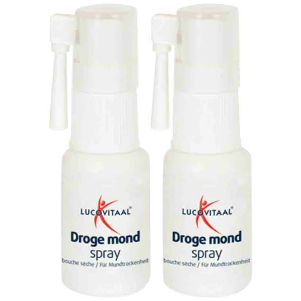 Medisch hulpmiddel Droge Mond Spray van Lucovitaal is speciaal ontwikkeld voor de behandeling van de droge mond (Xerotomie). Droge Mond Spray behandelt monddroogheid en pijnlijk slikken door medicijn gebruik. Een droge mond wordt veroorzaakt door een tekort aan speeksel in je mond. Vaak geeft het een onaangenaam gevoel. Het kan slikken, eten en praten soms bemoeilijken. Droge Mond Spray van Lucovitaal is een milde spray, die de mond bevochtigt en een beschermlaag op het mondslijmvlies legt, bij afwezigheid van speeksel. Daarnaast stimuleert het de aanmaak van speeksel. Het gebruik van Droge Mond Spray vermindert tevens een slechte adem of een slechte smaak in de mond. Het werkt direct en bevat geen alcohol. Lucovitaal Droge Mond Spray: