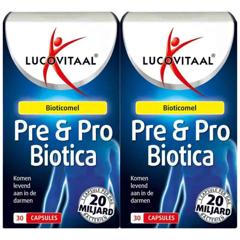 Lucovitaal Pre- & Probiotica bevat 20 miljard Probiotica bacteriën en 50 mg Prebiotica in een maagsapresistente capsule. De Probiotica in Pre- & Probiotica van Lucovitaal komen levend aan in de darmen.