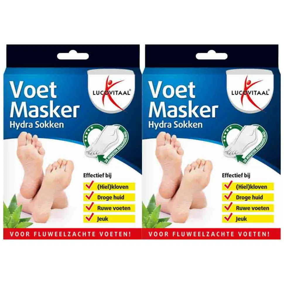 De Voetmasker Hydra Sokken van Lucovitaal maken je voeten fluweelzacht, zonder lelijke eeltplekken, pijnlijke (hiel)kloven en harde plekken. De hydra sokken voeden en hydrateren je voeten intensief en verlossen je voeten van een (extreem) droge huid, ruwe plekken en jeuk. Daarnaast maken de sokken kloofjes en scheurtjes zachter zodat deze beter kunnen herstellen.