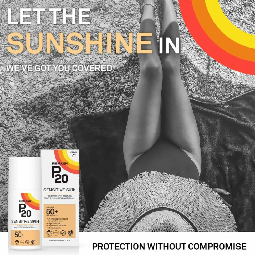 P20 Sensitive SPF 50+ lotion is een snel absorberende zonnebrandcrème die dermatologisch getest is voor de gevoelige huid en die met de Triple Protection Technology tot 10 uur zonbescherming biedt tegen schadelijke UV-straling van de zon. P20 Sensitive SPF 50+ biedt het dubbele van de UVA-bescherming die de EU vereist en wordt beoordeeld met 4 van de 5 sterren. P20 Sensitive is dermatologisch getest voor de gevoelige huid, AllergyCertified, ongeparfumeerd en vegan.