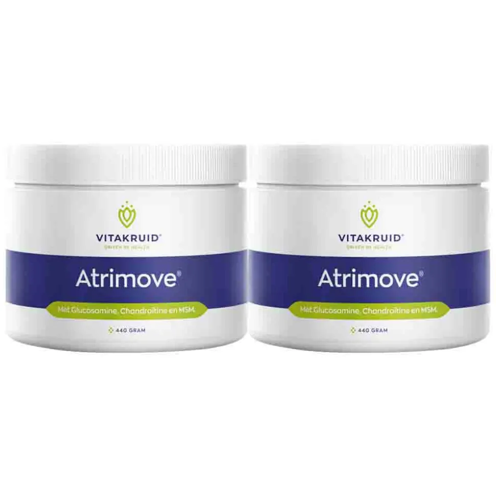 Vitakruid Atrimove Granulaat is een formule die het behoud van gezonde botten, spieren en gewrichten ondersteunt. Atrimove Granulaat bevat glucosamine, Chondroïtine-sulfaat, Magnesium, Mangaan, vitamine C, vitamine B6 en vitamine D.