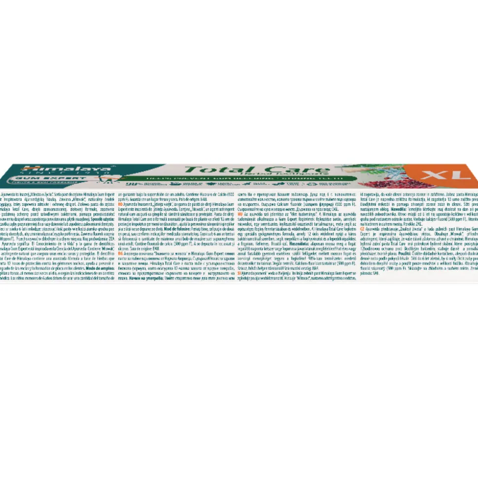 Himalaya Herbals Gum Expert Total Care XL Tandpasta biedt 12 uur lang bescherming tegen schadelijke kiemen, helpt plakvorming te voorkomen, helpt tandbederf te voorkomen, zorgt voor schone en witte tanden, helpt tandvleesbloedingen te verminderen, helpt tandvleesontsteking te voorkomen, verfrissende smaak, 100% vegetarisch.