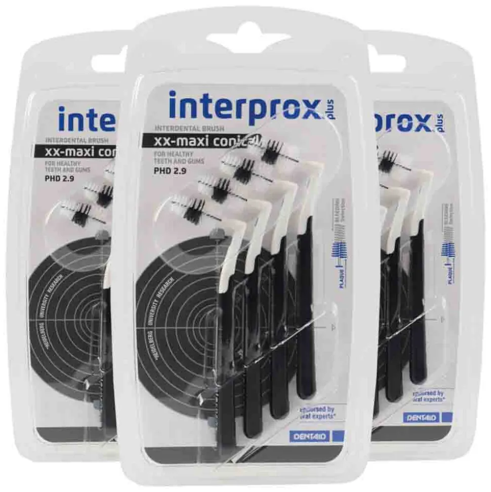 Interprox Plus XX-Maxi Conical Zwart is speciaal ontwikkeld voor het reinigen van de ruimten tussen tanden vóór in de mond. Cariës (gaatjes) en tandvleesontstekingen beginnen vaak tussen tanden en kiezen. Deze ruimte reinig je het meest effectief met een interdentaal borsteltje. Een borsteltje is effectiever dan tandenstokers of rubbersticks. De borsteltjes van Interprox zijn voor dagelijks gebruik en gaan langer mee. Omdat de interdentale ruimten tussen tanden en kiezen varieert, is het belangrijk om voor iedere specifieke situatie het meest geschikte borsteltje te kiezen. Vraag je mondzorgprofessional welke maat het meest geschikt is. Interprox Plus XX-Maxi Conical Zwart heeft een praktisch, flexibel handvat en beschikt over een conische borstelvorm met PHD maat 2.9.