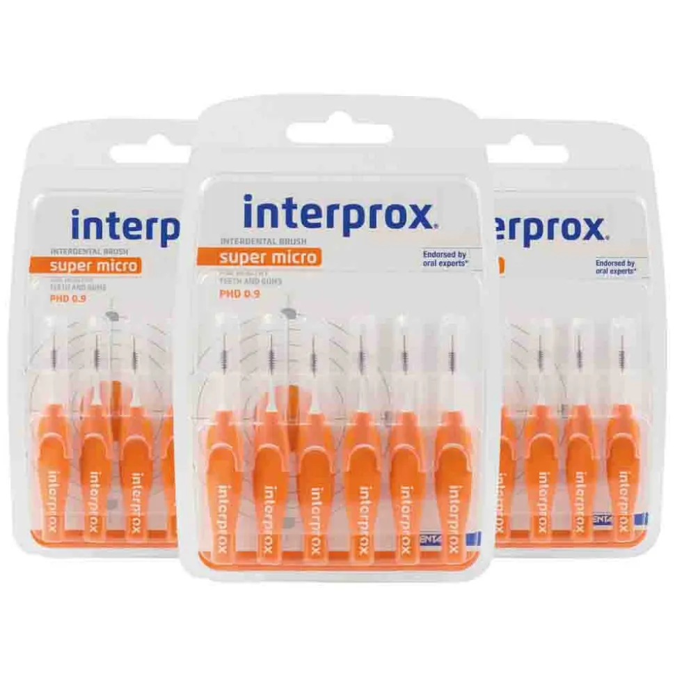 Interprox Super Micro Oranje is speciaal ontwikkeld voor het reinigen van de ruimten tussen tanden vóór in de mond. Cariës (gaatjes) en tandvleesontstekingen beginnen vaak tussen tanden en kiezen. Deze ruimte reinig je het meest effectief met een interdentaal borsteltje. Een borsteltje is effectiever dan tandenstokers of rubbersticks. De borsteltjes van Interprox zijn voor dagelijks gebruik en gaan langer mee. Omdat de interdentale ruimten tussen tanden en kiezen varieert, is het belangrijk om voor iedere specifieke situatie het meest geschikte borsteltje te kiezen. Vraag je mondzorgprofessional welke maat het meest geschikt is. Interprox Super Micro Oranje heeft een praktisch, flexibel handvat en beschikt over een cylindrisch gevormde borstelkop met PHD maat 0.9.