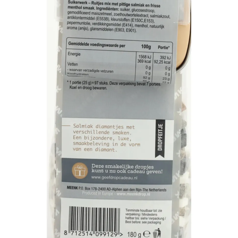 Meenk Gloaria Mix is een heerlijke mix van kleine dropjes, ideaal voor de liefhebber van traditionele Nederlandse snoepjes.
