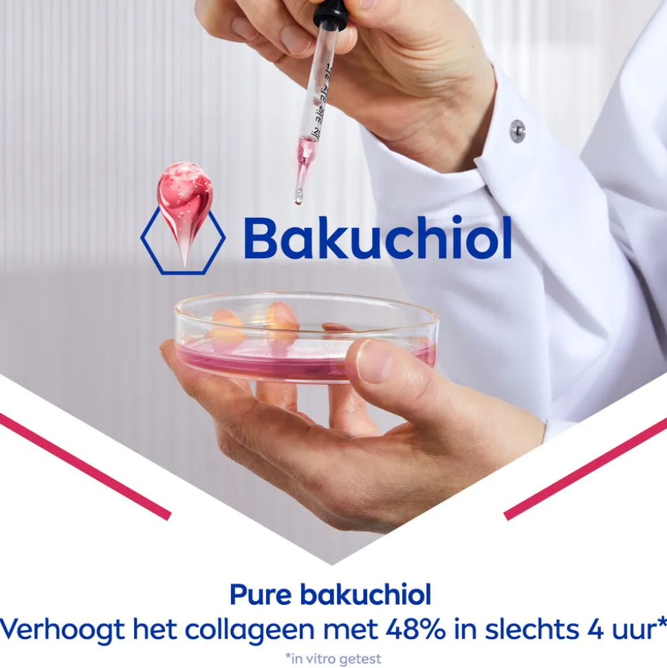 NIVEA Cellular Expert Lift Anti-Age Nachtcrème 50ml bevat een combinatie van krachtige anti-age ingrediënten die diep in de cel werken. Een jonger uitziende huid is een zichtbare weerspiegeling van cellulaire activiteiten. De nachtcrème bevat pure Bakuchiol en Micro & Macro Hyaluronzuur. Bakuchiol is een ingrediënt van plantaardige oorsprong, afkomstig van de Babchiplant (Psoralea corylifolia). Het ondersteunt de collageenproductie van de cel, vermindert diepe rimpels, verstevigt de huid en laat de huid glad aanvoelen. De twee anti-age ingrediënten, die er om bekend staan dat ze huid hydrateren, glad maken en helpen om rimpels zichtbaar te verminderen. Macro Hyaluronzuur helpt het huidoppervlak intens te hydrateren en glad te maken, door tot 1000 keer het gewicht in water vast te houden. Micro Hyaluronzuur dringt nog dieper door in de huid, waardoor een rimpels worden verminderd. De nachtcrème ondersteunt het herstellend vermogen tijdens de nacht.