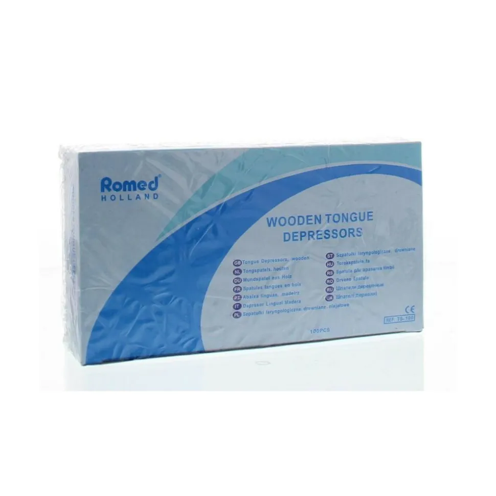 De houten tongspatel van Romed wordt vooral gebruikt om de tong mee naar beneden te duwen, zodat je goed in de keelholte kunt kijken.