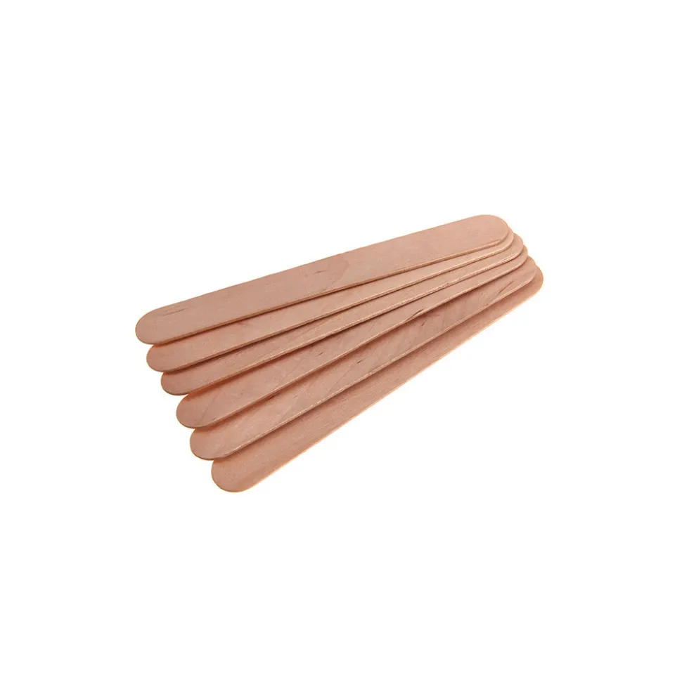 De doos bevat 100 houten spatels met de afmeting van 150 x 18 mm.