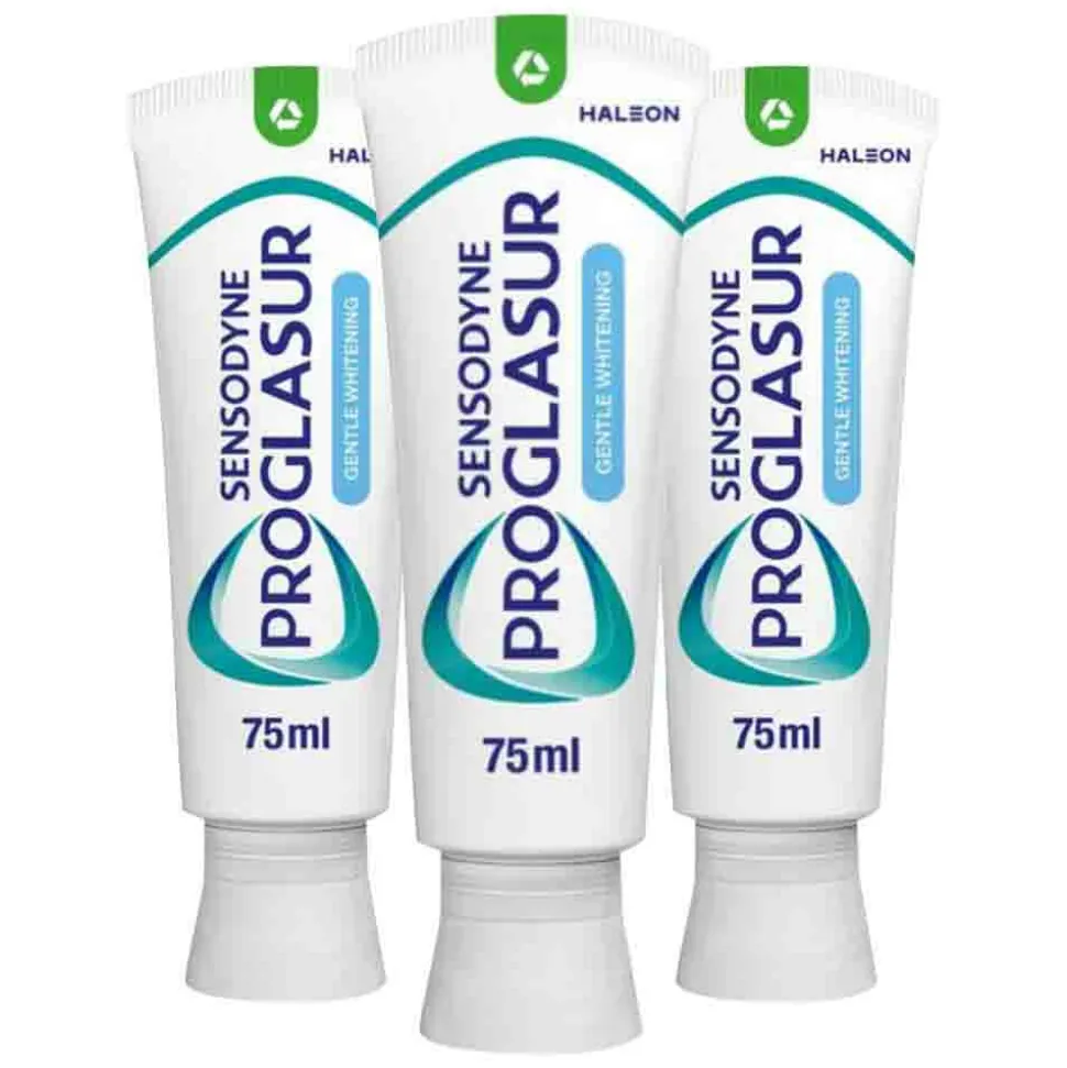 Sensodyne Proglasur Gentle Whitening tandpasta is speciaal geformuleerd om tanden te helpen beschermen tegen de effecten van tanderosie*. Wanneer je Proglasur Multi Action Gentle Whitening tandpasta gebruikt dringt fluoride diep binnen in het oppervlak van uw tanden, waar ze het verzwakt glazuur actief helpt versterken en opnieuw verhardt bij elke poetsbeurt.Tegelijkertijd helpt deze tandpasta op een zachte manier de natuurlijke witte kleur van je tanden terug te brengen.