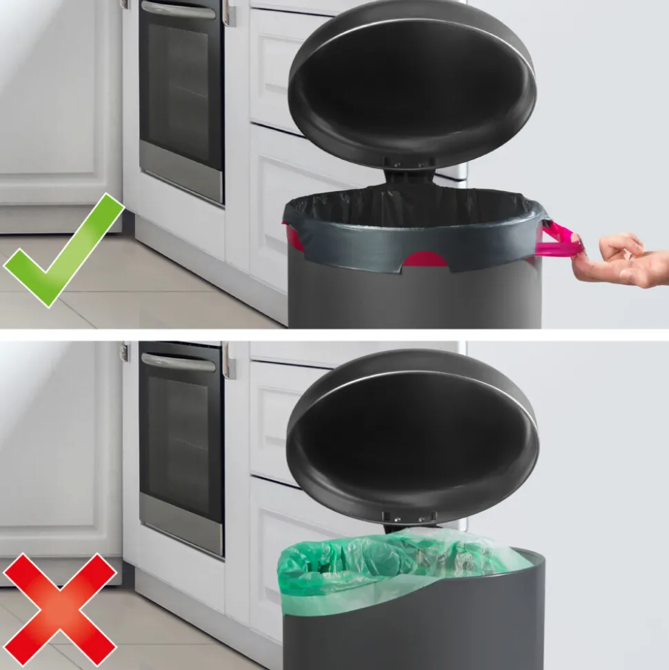 De pedaalemmerzak is gemakkelijk om de rand van de emmer te bevestigen. De elastische fixeerband voorkomt dat de zak wegglijdt en de emmer vuil wordt. Heel eenvoudig en echt praktisch! Ook het verwijderen van het afval is heel eenvoudig: Leg gewoon een knoop in de elastische fixeerband en u heeft een praktisch handvat. Swirl® Fixeerband pedaalemmerzakken zijn scheurvast en waterdicht en zijn gemaakt van minstens 80% gerecycled plastic waarvan minstens de helft (40%) afkomstig is uit post-consumer plastic afval.