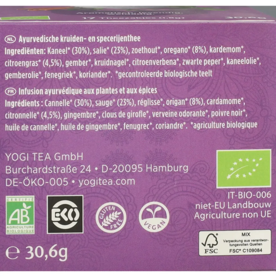 Yogi Tea Forever Young met aromatische salie en verwarmende kaneel doet ons denken aan de aloude mediterrane traditie van saliethee. Omdat salie rijk is aan antioxidanten, wordt dit kruid al eeuwen in de Ayurvedische traditie gebruikt ter ondersteuning van elegant ouder worden. Citroengras, kardamom en zoethout versterken deze unieke thee. Je goed voelen en tijd voor jezelf maken is een kunst. Ontspan je en geniet van een kop Yogi Tea Forever Young en vergeet niet om goed voor jezelf te zijn.