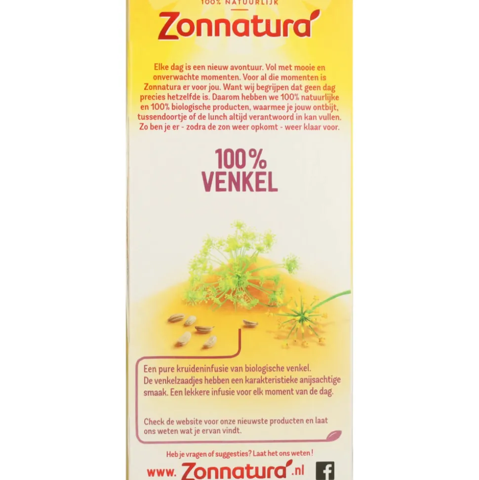 Zonnatura Venkel is een thee op basis van alleen pure biologische venkel. Venkel staat bekend om zijn anijsachtige smaak. De venkelzaadjes worden na de oogst fijngemalen, zodat de van nature zoete smaak goed tot zijn recht komt en heerlijk in balans is. Lekker voor elk moment van de dag.