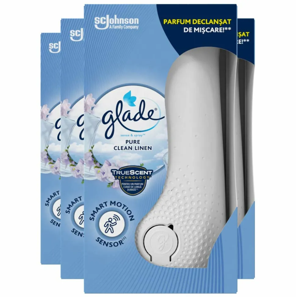 Glade Sense & Spray Pure Clean Linen houder verspreidt een verfrissende geur van versgewassen linnen.