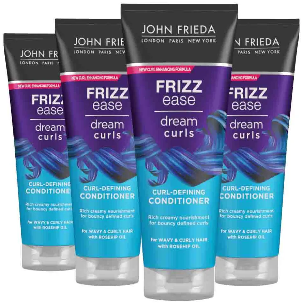 John Frieda Frizz Ease Dream Curls Conditioner verstrekt en definieert het natuurlijke krulpatroon, speciaal met voedende bestanddelen en pluis-bestrijdende siliconen. De conditioner gaat pluis tegen en laat de natuurlijke krullen laten herleven. De conditioner is ontwikkeld voor golvend, krullend, pluizig haar. Voor zachte, veerkrachtige krullen met een langdurige kruldefinitie. Veilig voor gekleurd haar.