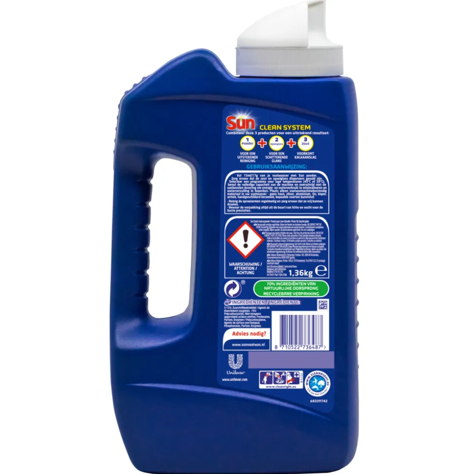 - Gebruik in de vaatwasser in combinatie met Sun Zout en Sun Spoelglans