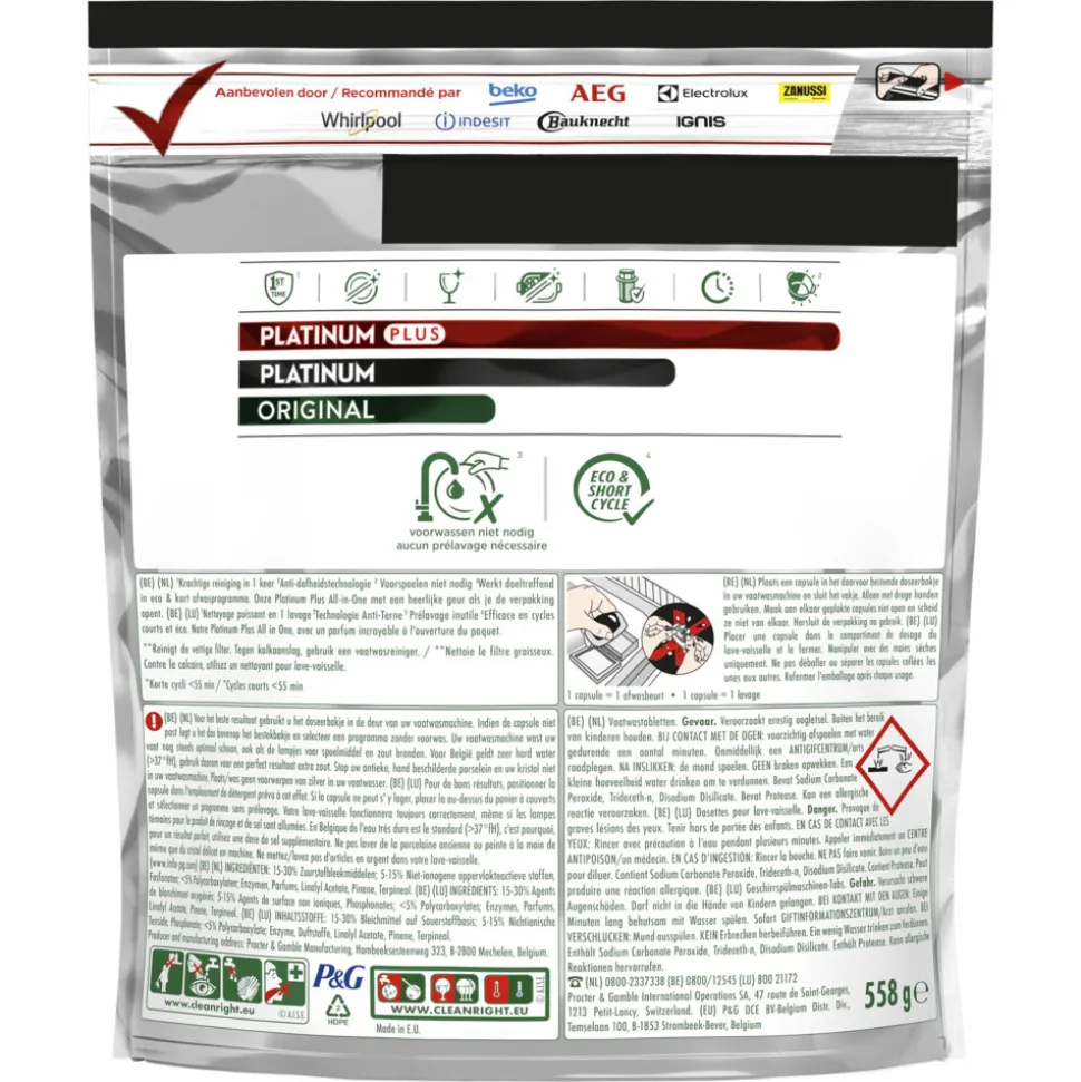 Dreft Platinum Plus All In One Vaatwastabletten Anti-dofheidstechnologie