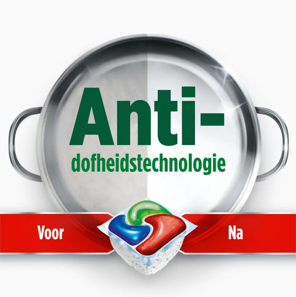 - Verwijdert de dofheid om de oorspronkelijke glans van je vaat te herstellen, dankzij de Anti-dofheidstechnologie