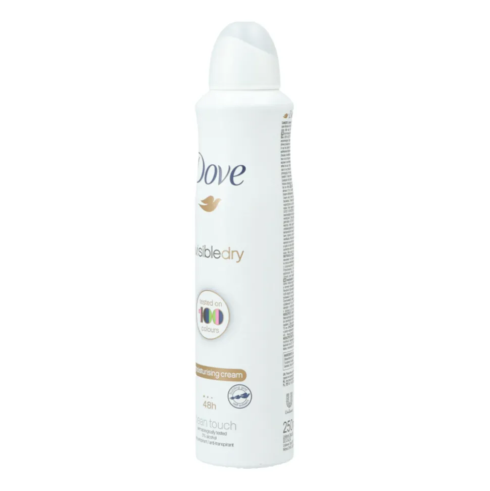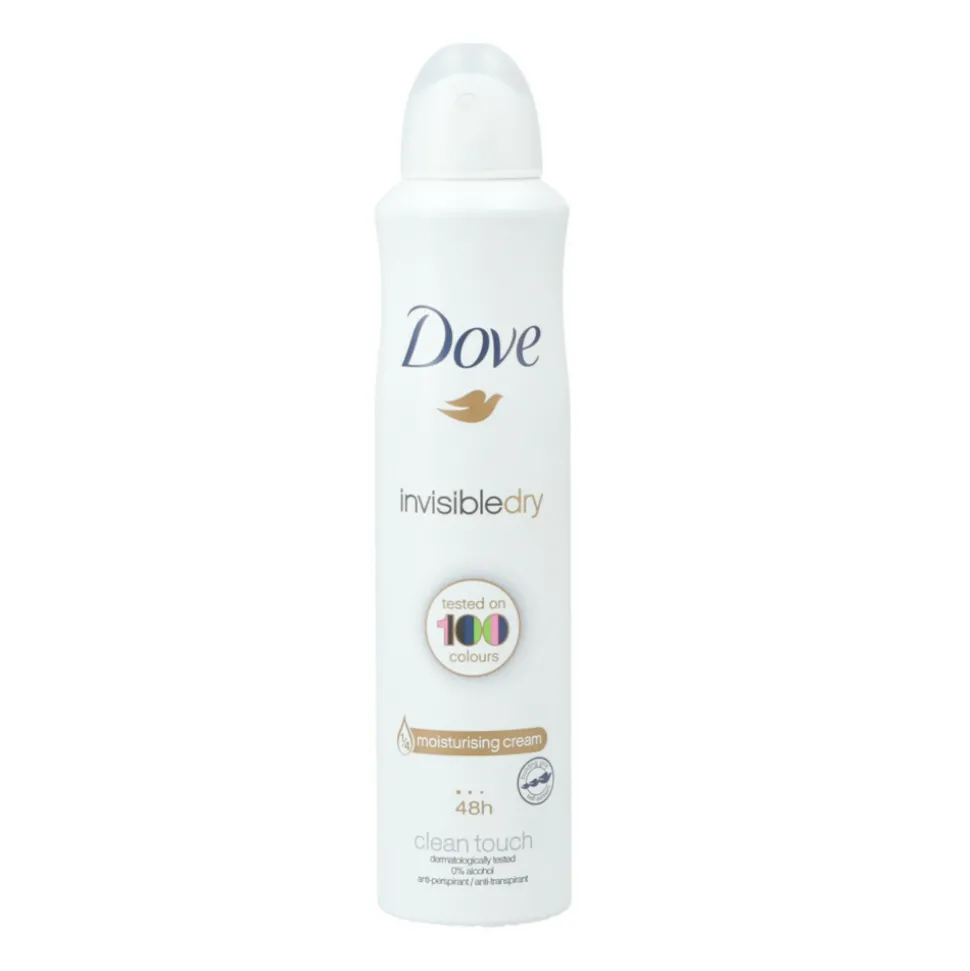 Dove Invisible Dry neutraliseert vieze geurtjes en laat je oksels heerlijk fris ruiken. Daarnaast zorgt deze anti-transparant ervoor dat je kleding optimaal wordt beschermd tegen witte strepen en gele vlekken. Dove Invisible Dry is de eerste deodorant die getest is op 100 kleuren en op alle 100 kleuren is deze deodorant bewezen onzichtbaar.