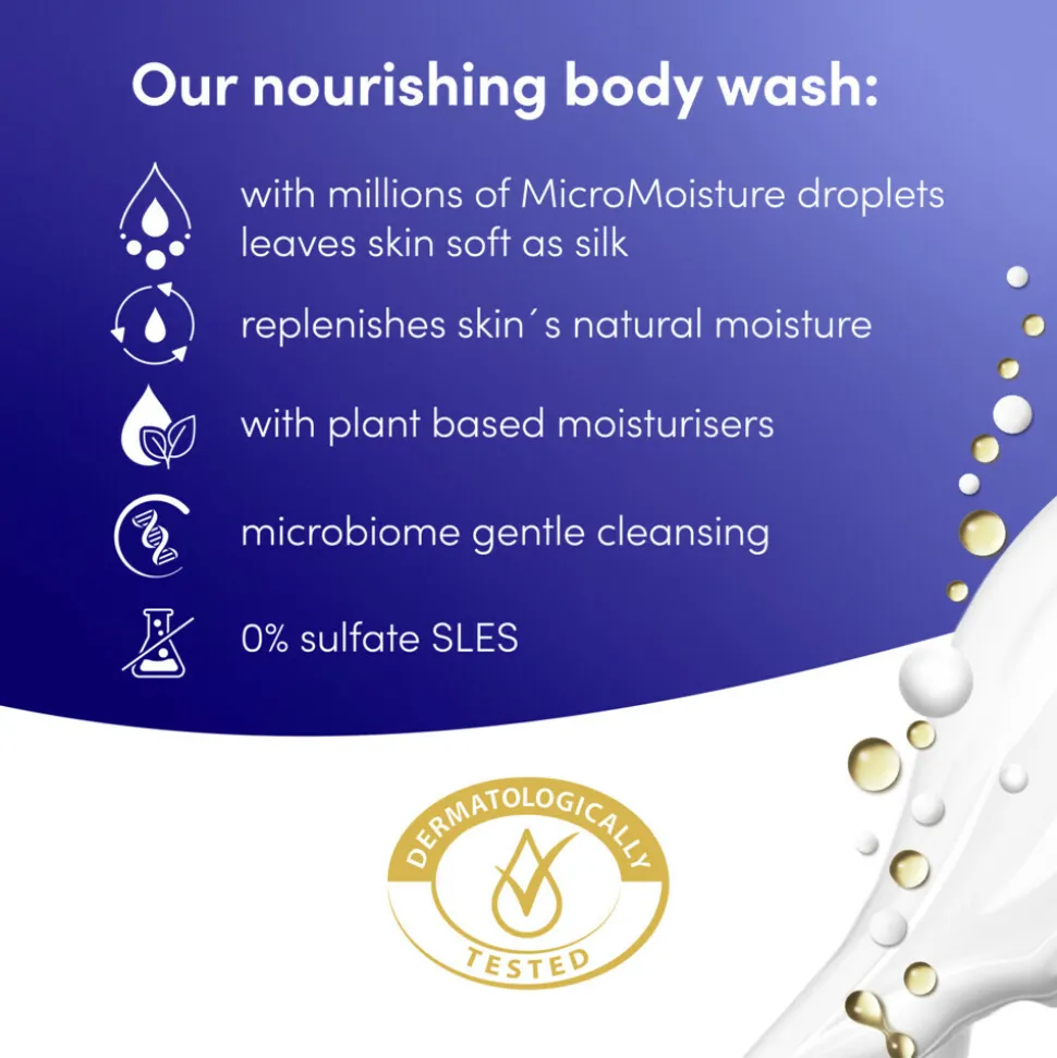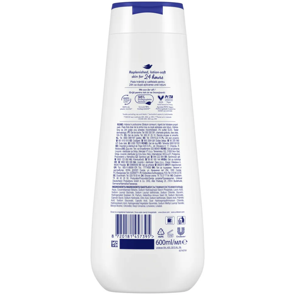 Dove Advanced Care Deeply Nourishing Verzorgende Douchegel reinigt de huid en zorgt voor een zachtere, gladdere huid, na slechts één keer douchen.