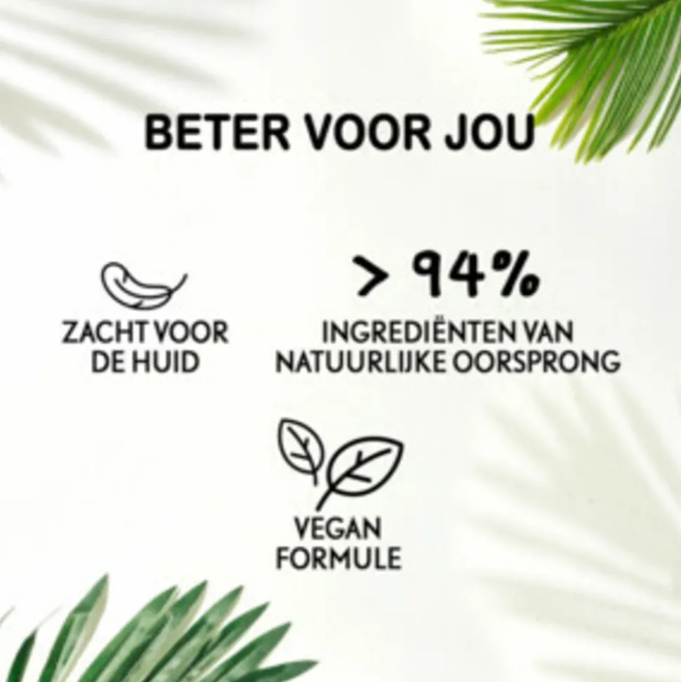 - 94% ingrediënten van natuurlijke oorsprong (incl. water)