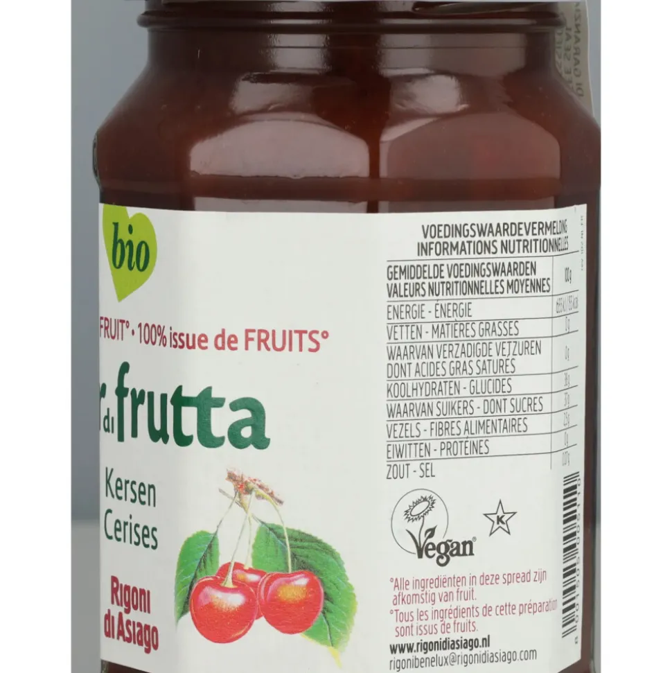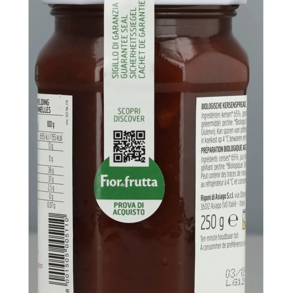 Fiordifrutta Biologische Jam Kersen is een verrukkelijke, hoogwaardige jam gemaakt van 100% biologisch fruit. Deze variant bevat maar liefst drie verschillende soorten kersen: zoet, zuur en wild, die samen een heerlijk aroma geven. De jam wordt gezoet met biologische appelsap, zodat er geen toegevoegde suikers nodig zijn, en bevat tot wel 30% minder calorieën dan gewone jams. Bovendien wordt de jam bereid op lage temperaturen tussen de 30 en 35°C, waardoor de authentieke smaak van het vers geplukte fruit perfect behouden blijft.