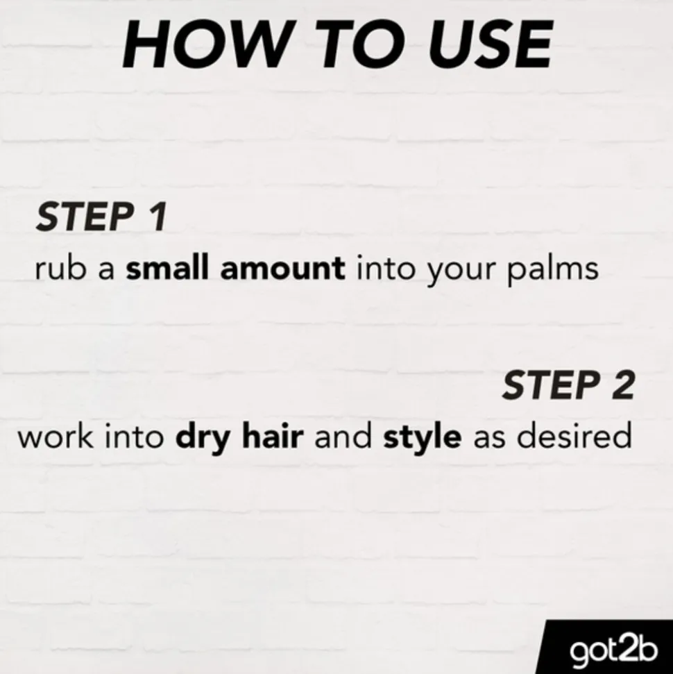 HOW-TO: Wrijf een kleine hoeveelheid wax in je handpalmen, breng aan in droog haar en style zoals gewenst.