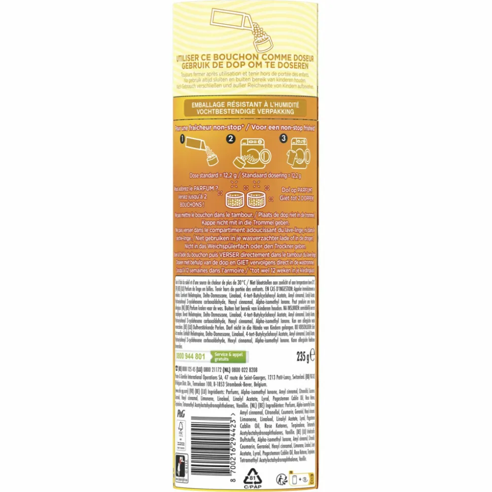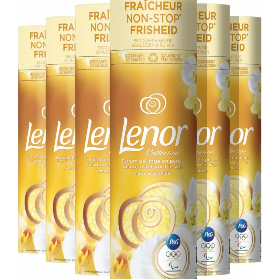 Ontdek de Lenor geurbooster voor je was voor een boost van non-stop frisheid tot 12 weken in je kledingkast. Lenor geeft je kleding de geur van Amber & Orchidee. Deze elegante geur is doordrenkt met een verleidelijk vleugje vanille dat je geest kalmeert en tot rust brengt. Lenor Amber & Orchidee, gemengd met heerlijke bloemenakkoorden en vanillenoten, geeft je een ongelooflijk weelderige ervaring. De Lenor Amber & Orchidee Geurboosters Voor Je Was zijn gecreëerd om perfect samen te werken met de Lenor Amber & Orchidee wasverzachter.
