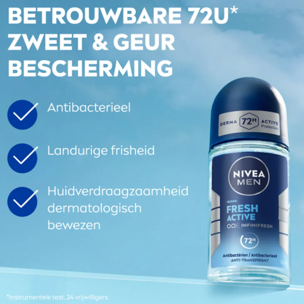 NIVEA MEN Fresh Active Deodorant Roller is speciaal ontwikkeld voor de moderne man die op zoek is naar effectieve bescherming tegen zweet en geur. De deodorant bevat de innovatieve INFINIFRESH-formule, die actief geurveroorzakende bacteriën bestrijdt en zorgt voor een langdurige, frisse geur. Dankzij de formule zonder ethylalcohol is deze deodorant bijzonder huidvriendelijk. Of je nu een drukke werkdag hebt of een intensieve sporttraining volgt, de NIVEA MEN deodorant biedt betrouwbare bescherming tegen zweet en geur.