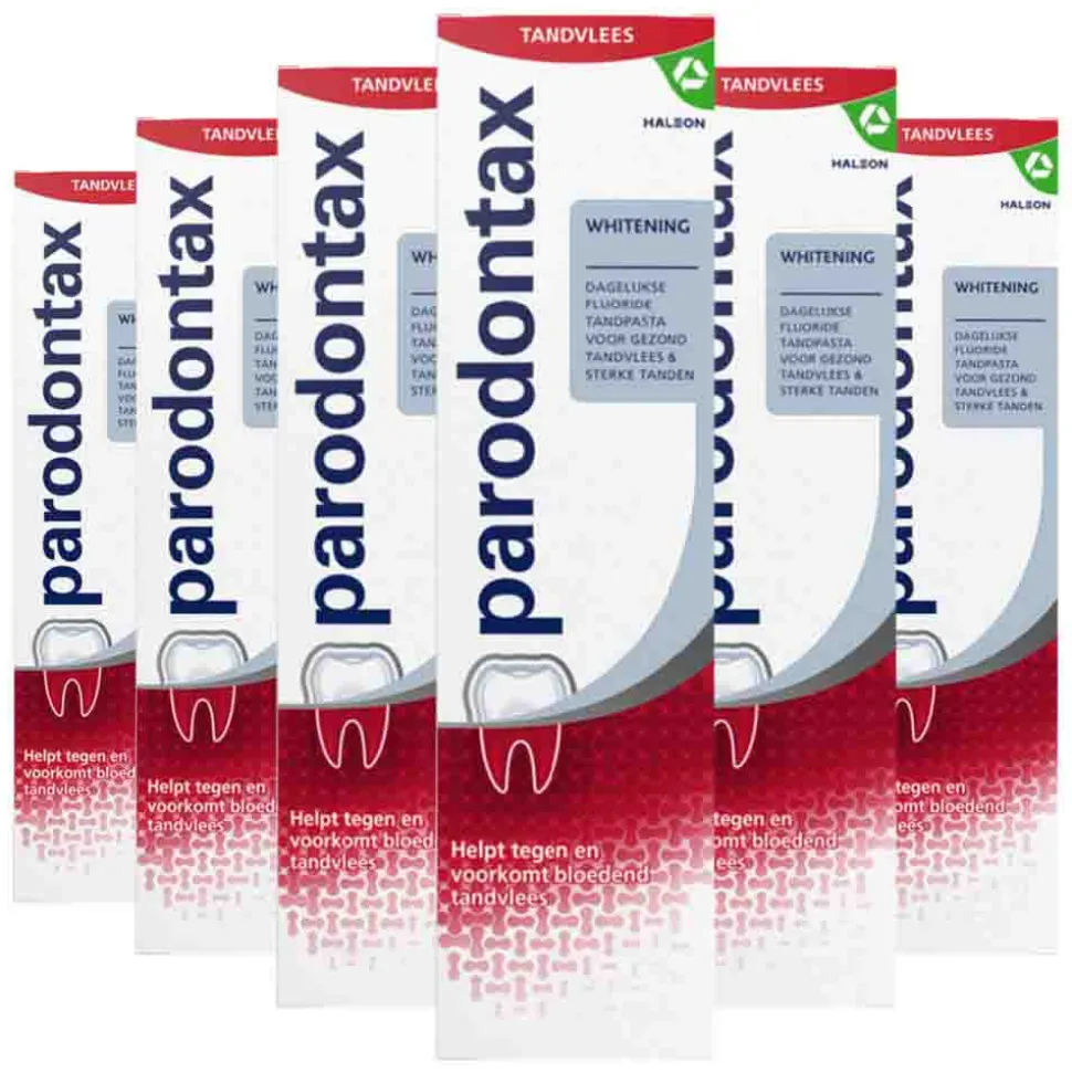 Parodontax Tandpasta bij Bloedend Tandvlees Whitening is speciaal ontwikkeld om je tanden gezond en natuurlijk wit te houden. Deze tandpasta verwijdert effectief tandplak en helpt oppervlakkige verkleuringen voorzichtig weg te poetsen. Dankzij de formule met fluoride en natriumbicarbonaat is deze tandpasta geschikt voor dagelijks gebruik. Poets je twee keer per dag, dan helpt Parodontax bloedend tandvlees te stoppen én te voorkomen. Bovendien is deze tandpasta vier keer effectiever in het verwijderen van tandplakbacteriën dan gewone tandpasta*. Nu met een verbeterde smaak, die na 14 dagen door de meeste mensen als prettig wordt ervaren.