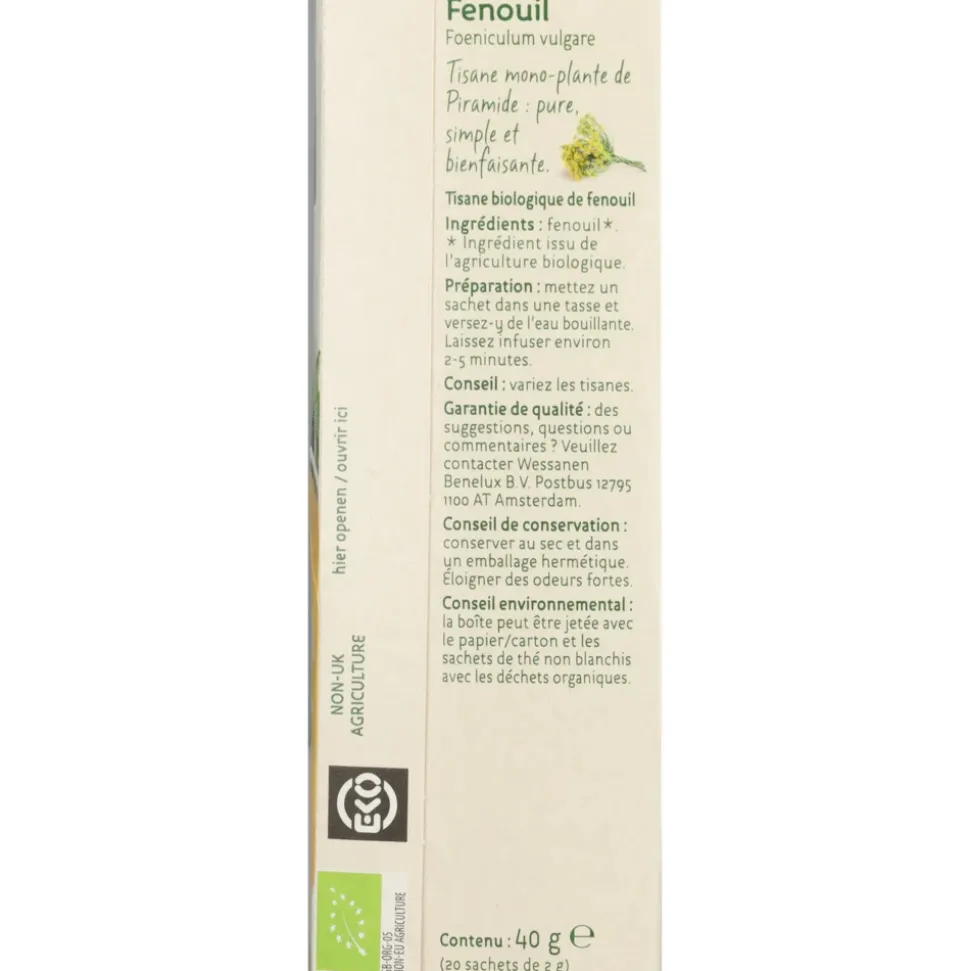 De biologische kruidenthee met Venkel van Piramide is van biologische oorsprong en draagt bij aan een goede vochtbalans
