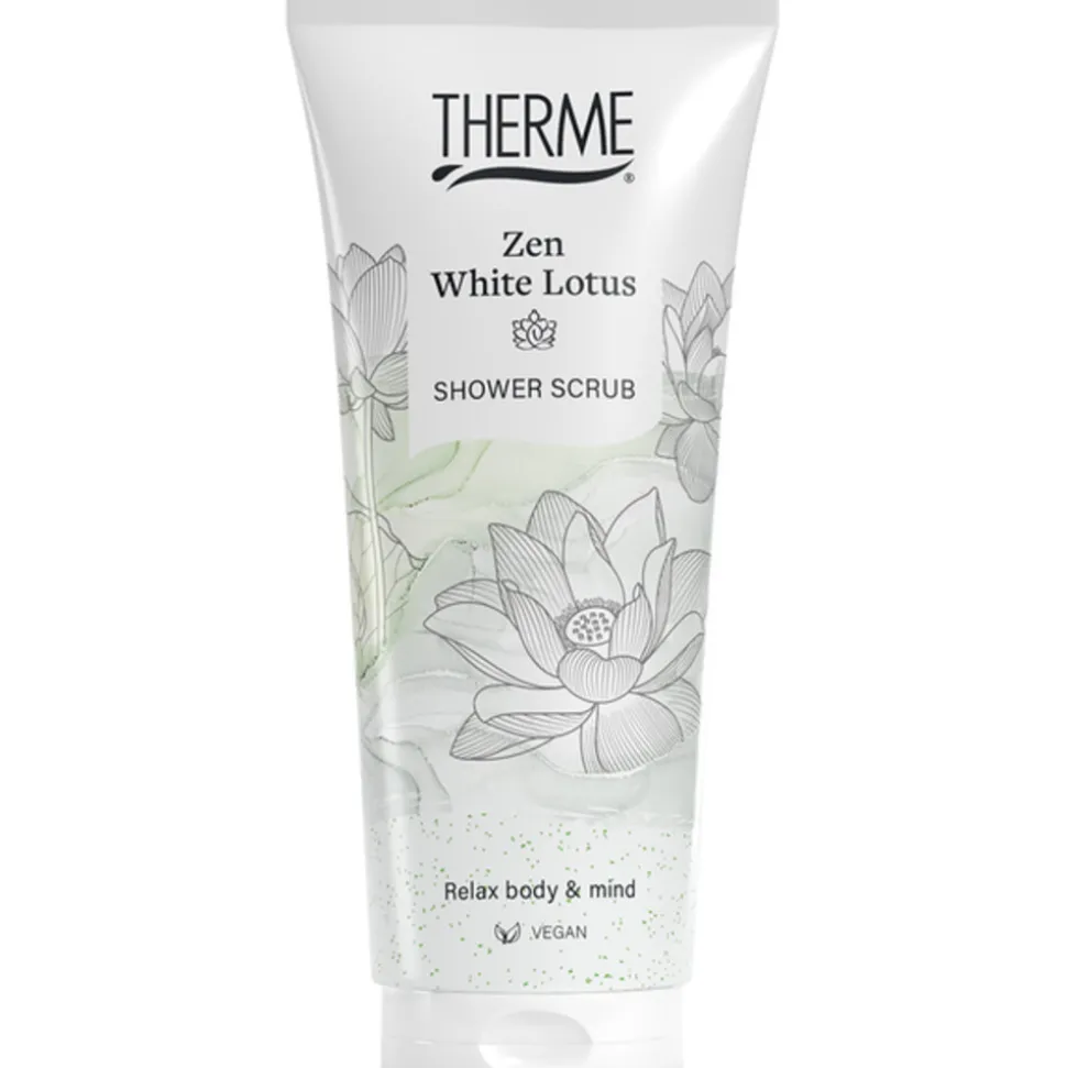 Therrme Zen White Lotus Shower Scrub is een milde lichaamsscrub met natuurlijke scrubdeeltjes. Het verwijdert dode huidcellen en helpt de celvernieuwing te stimuleren. Geniet van de serene geur van witte lotus gecombineerd met aromatische jasmijn en subtiele witte musk.